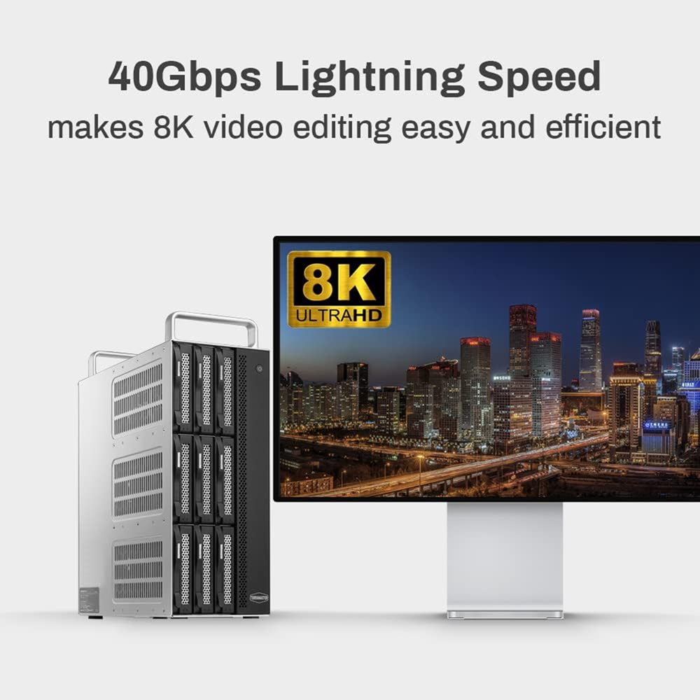 يدعم Thunderbolt 3 توصيل أكثر من 5 أجهزة تسلسليًا بكابل واحد، مما يوفر سعة تخزين قد تصل إلى 800TB عند ربط ستة أجهزة D8-332.