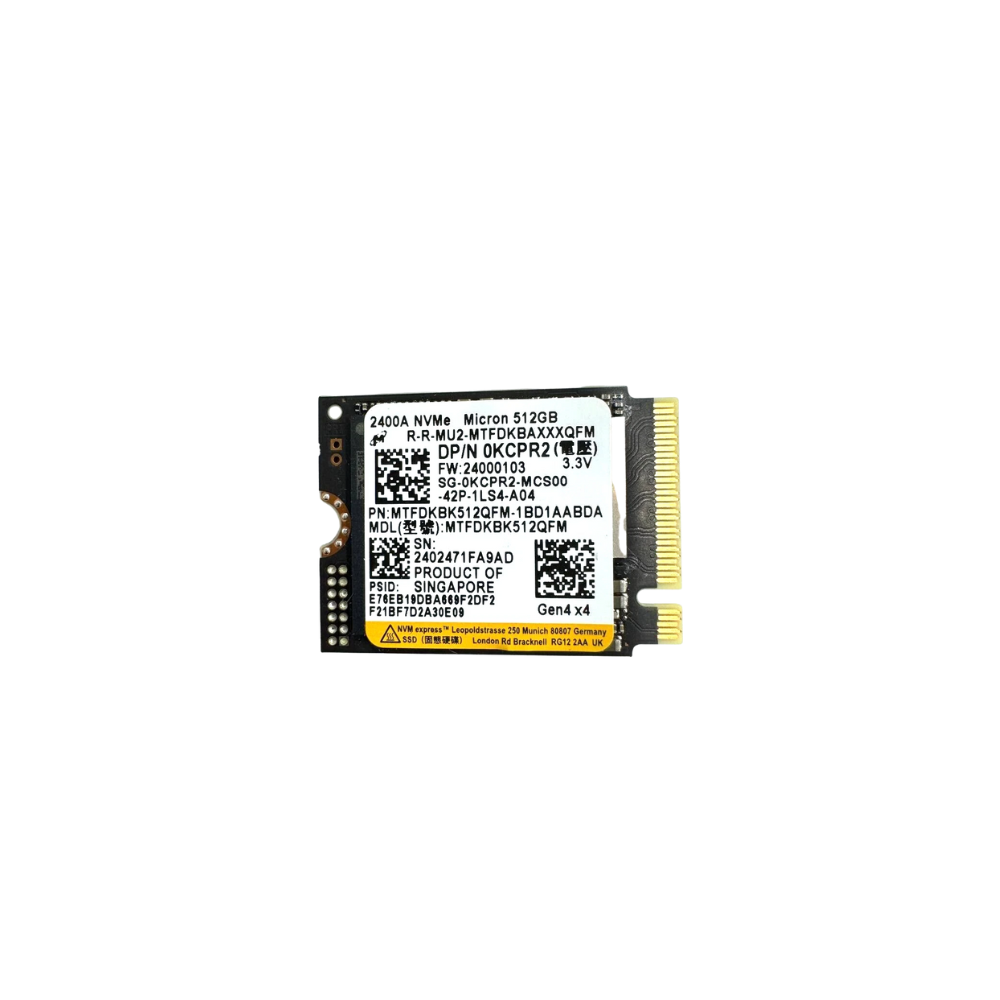 قرص Micron 2400A SSD بسعة 512 جيجابايت، مقاس M.2 2230، NVMe PCIe Gen4 x4 بسرعات تصل إلى 4200 ميجابايت/ثانية (نسخة OEM)