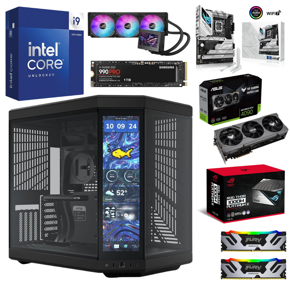 Alfa Gaming PC 4438 Intel Core i9-14900K Processor SAMSUNG 1TB 990 PRO M.2 NVMe SSD HYTE Y70 Touch Infinite ATX Mid Tower ASUS 24GB TUF Gaming RTX 4090 OC Edition VGA ASUS ROG Strix Z790-A Gaming WiFi II (WiFi 7) Kingston 32GB 6400MHz DDR5 Fury Renegade RGB RAM Windows 11 Pro