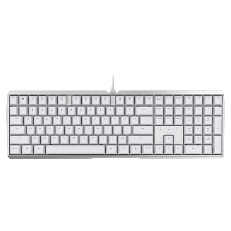 The Cherry MX 3.0S RGB White Mechanical Keyboard is a full-sized keyboard that features original Cherry MX Blue switches, a technical design, aluminium housing, RGB lighting, full N-key rollover, anti-ghosting, windows lock key, keyboard shortcuts, abrasion-resistant laser-etched keycaps and a detachable USB interface.