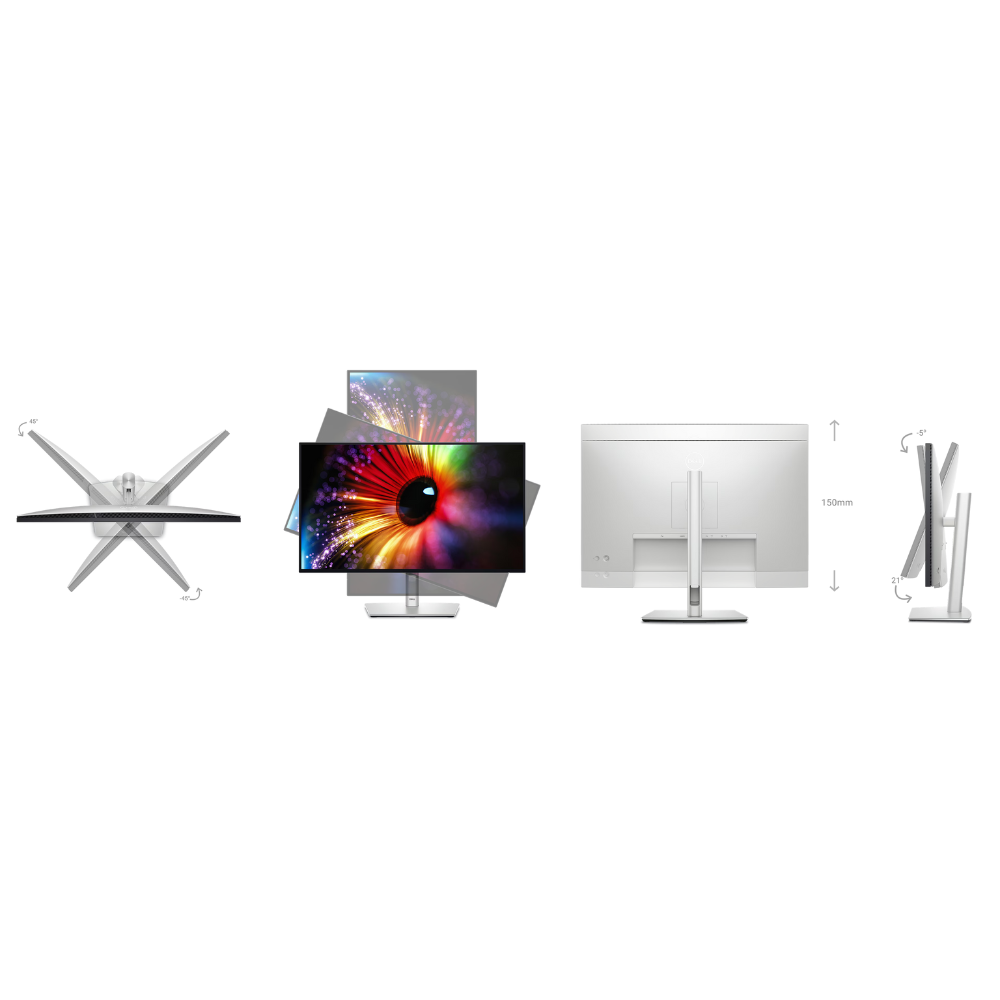 Dell U2725QE 32″ Size Display World’s 1st enhanced IPS Black monitor Certified by TÜV for 5-star Eye Comfort Anti-glare, 3H Hardness / 4K UHD @ 120 Hz DisplayPort 1.4 In / DisplayPort output / HDMI / USB-C World’s 1st IPS monitor with stunning 3000:1 contrast ratio Height Adjustment, Pivot (rotation), Swivel, Tilt, Wall-mount 100% sRGB, 100% BT.709, 99% Display P3, 99% DCI-P3, Delta E <1.5 (Average)