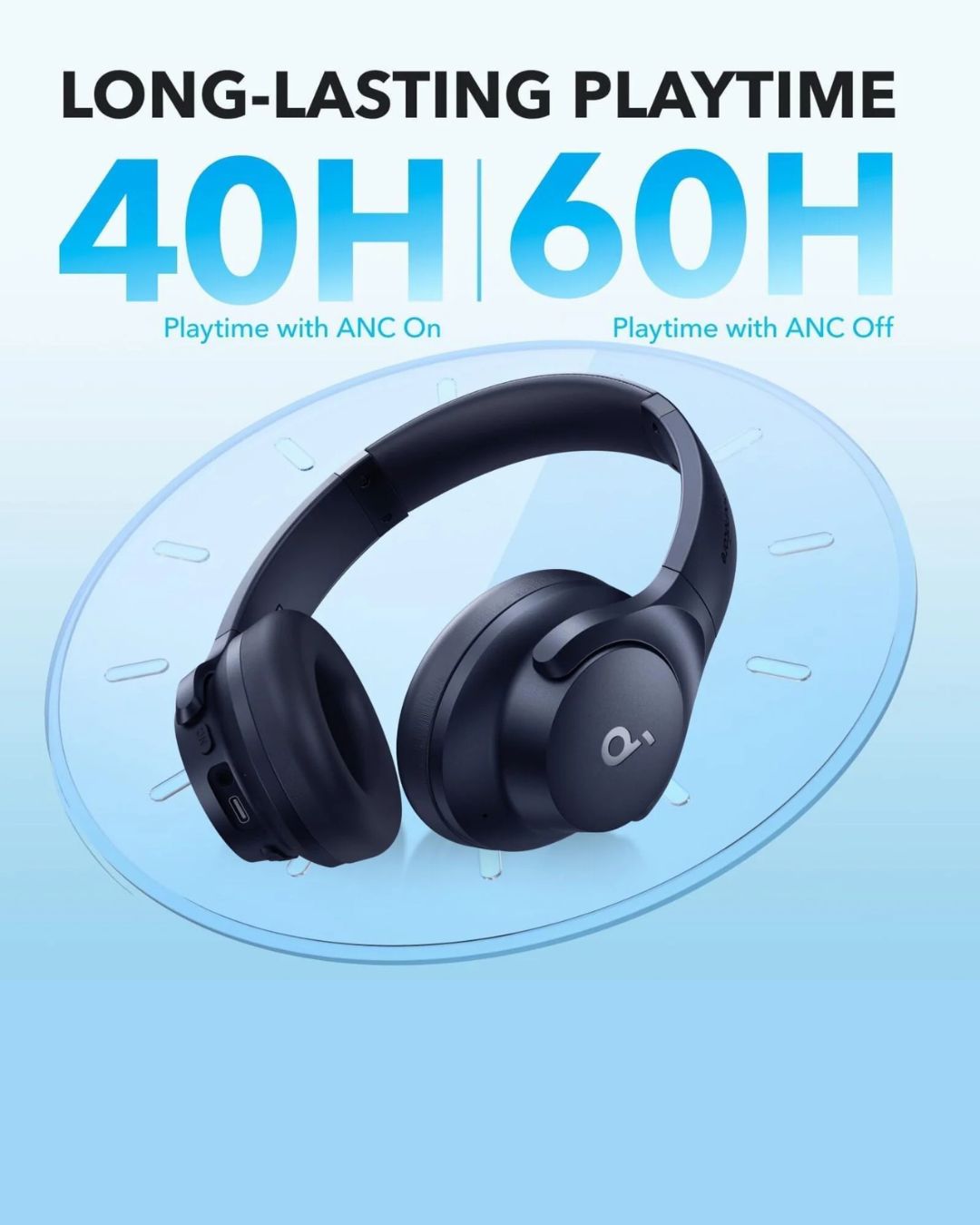 40-Hour Long Battery Life and Fast Charging: With 40 hours of battery life with ANC on and 60 hours in normal mode, you can commute in peace with your Bluetooth headphones without thinking about recharging. Fast charge for 5 mins to get an extra 4 hours of playtime.