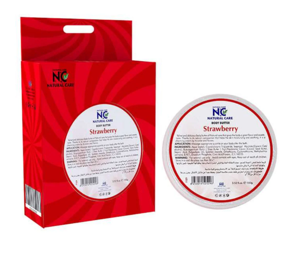 NC Strawberry Body Butter with strawberry flavor for sensitive areas and to increase desire and excitement, a natural product. Velvety and delicious from natural care that gives the body a wonderful flavor and sweet taste. Thanks to its natural formula that helps moisturize and soothe the skin, it is a charming cream with its color and flavor.