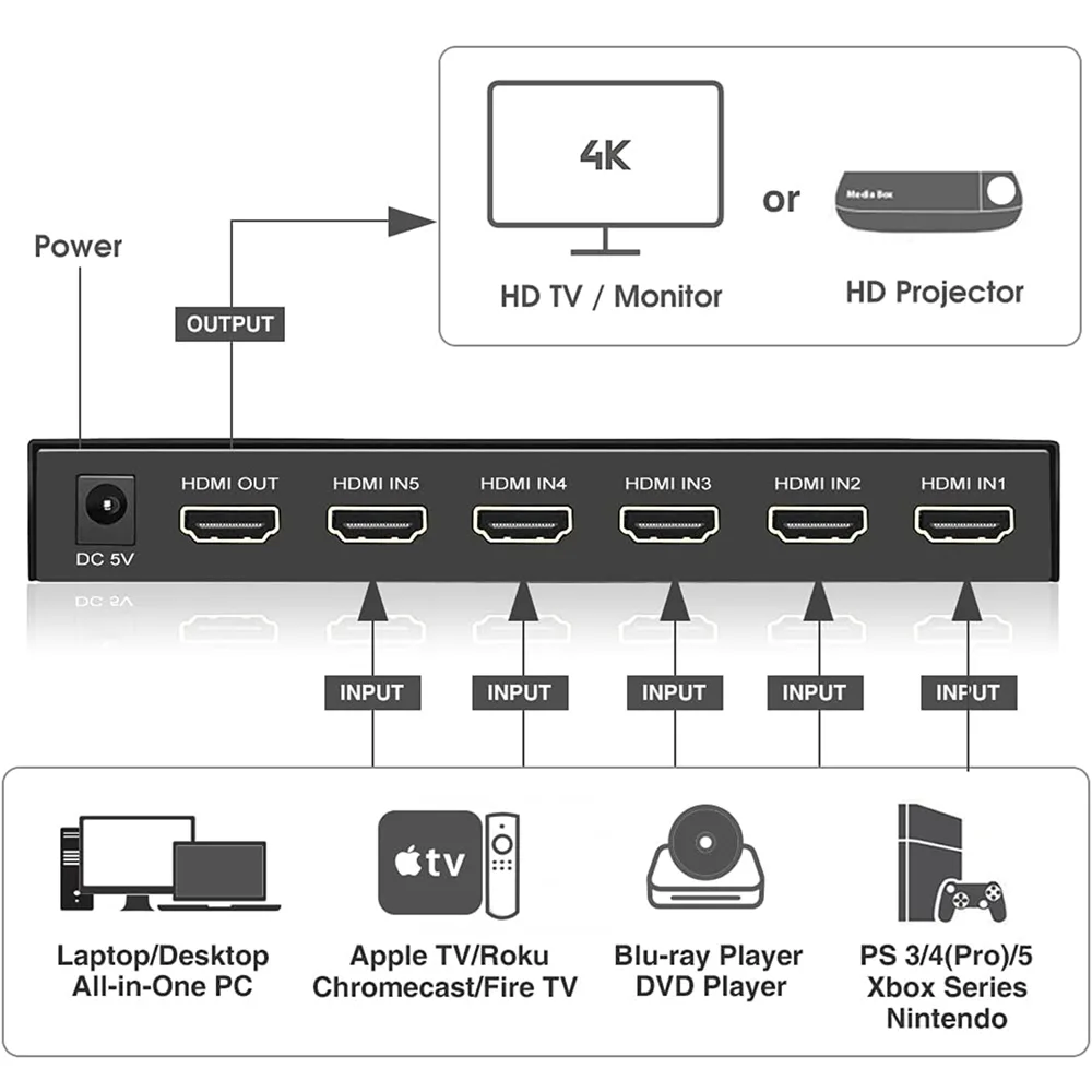 G154 HDMI Switch 5-in-1-out 2.0 4K@60Hz